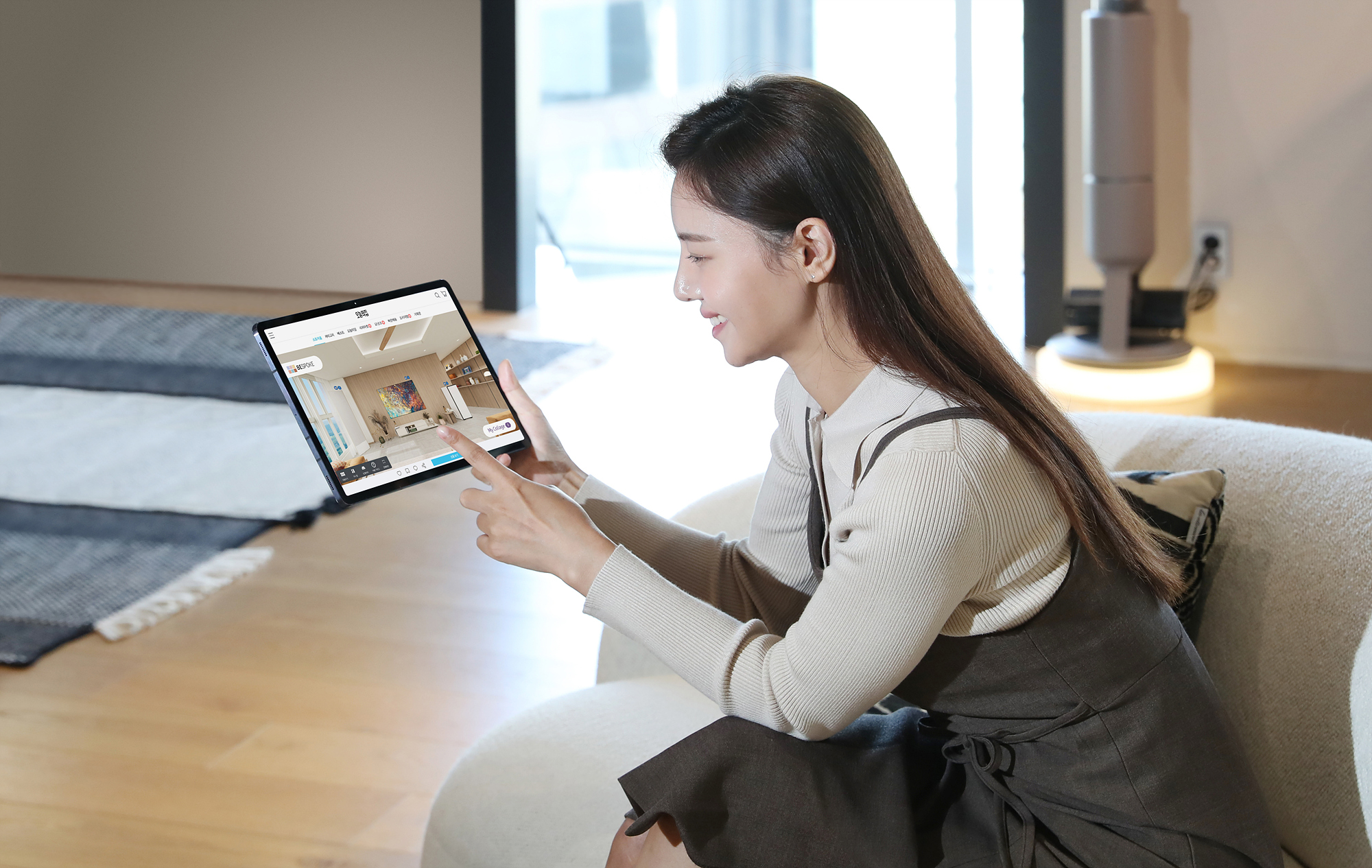 ▲삼성전자 모델이 서울 논현동에 위치한 삼성 디지털프라자 강남본점에서 비스포크 홈 메타와 오늘의집 공동 마케팅을 소개하고 있다.