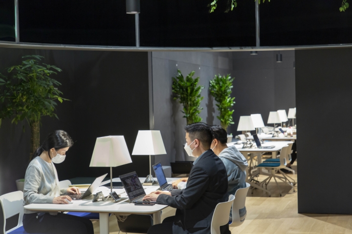 ▲삼성전자가 자율적이고 유연한 근무 문화를 위해 사외 거점 오피스와 사내 자율 근무존을 17일부터 공식 운영한다. 삼성전자 거점 오피스 ‘딜라이트 서초'(서울 서초구)에서 임직원들이 근무하는 모습.