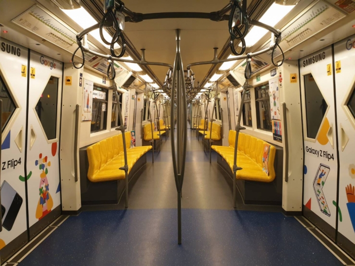 ▲갤럭시 Z 플립4와 구글을 상징하는 다양한 앱 이미지로 랩핑된 태국 방콕 수쿰빗 라인 스카이 트레인