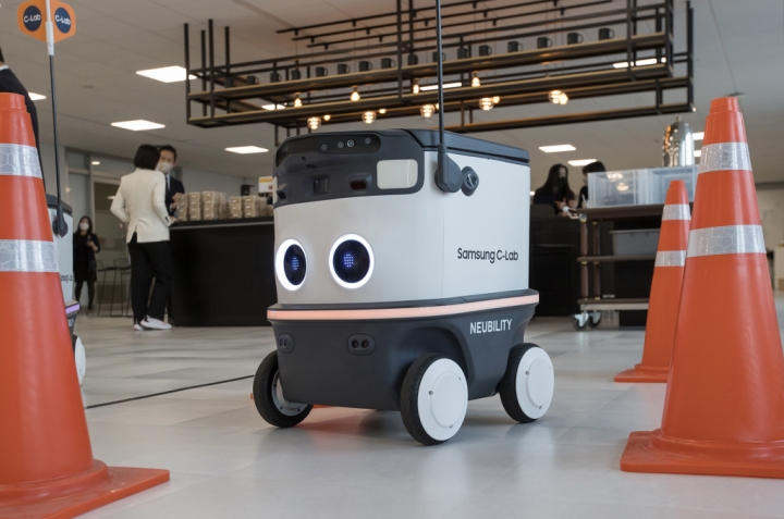 ▲C랩 아웃사이드 4기 스타트업 중 자율주행 로봇을 활용한 도심형 배달 서비스 업체 ‘뉴빌리티’가 사업을 소개하는 모습