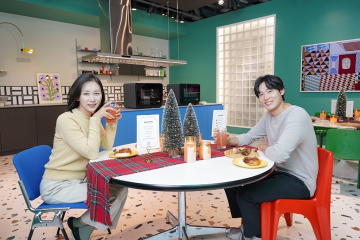 ▲ 지난 11일 삼성 디지털프라자 강남본점에서 진행된 ‘큐커 미식 페스티벌’에서 ‘비스포크 큐커’로 조리한 연말 홈파티 메뉴를 즐기고 있는 모습