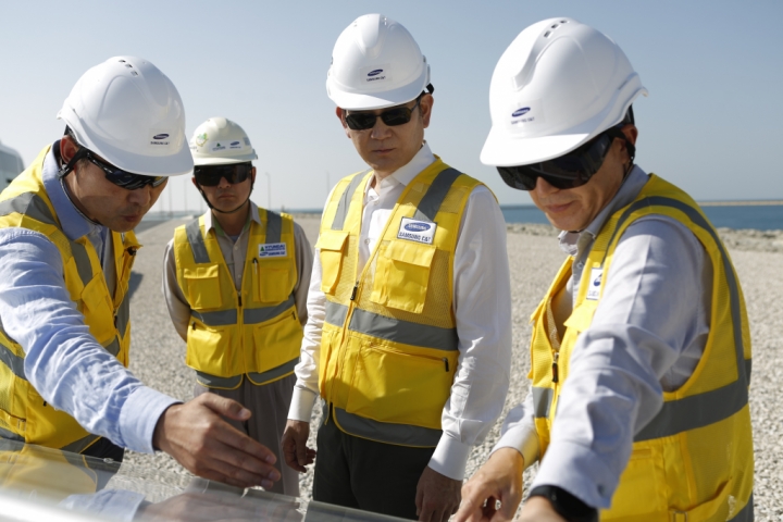 ▲ 12월 6일(현지 시각 기준) 아랍에미리트(UAE)에 위치한 바라카 원자력 발전소 건설 현장에 방문한 이재용 삼성전자 회장이 건설 현장을 둘러보고 있다.