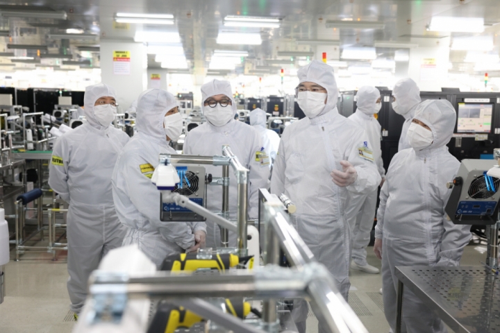 ▲ 이재용 삼성전자 회장이 22일(목) 베트남 하노이 인근의 삼성디스플레이 법인(SDV)을 방문해 디스플레이 생산 공장을 점검하는 모습