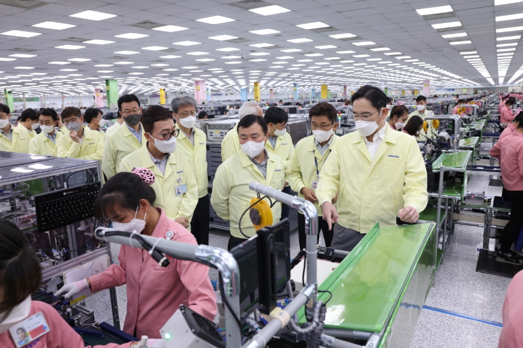 ▲ 이재용 삼성전자 회장이 22일(목) 베트남 하노이 인근의 삼성디스플레이 법인(SDV)을 방문해 디스플레이 생산 공장을 점검하는 모습