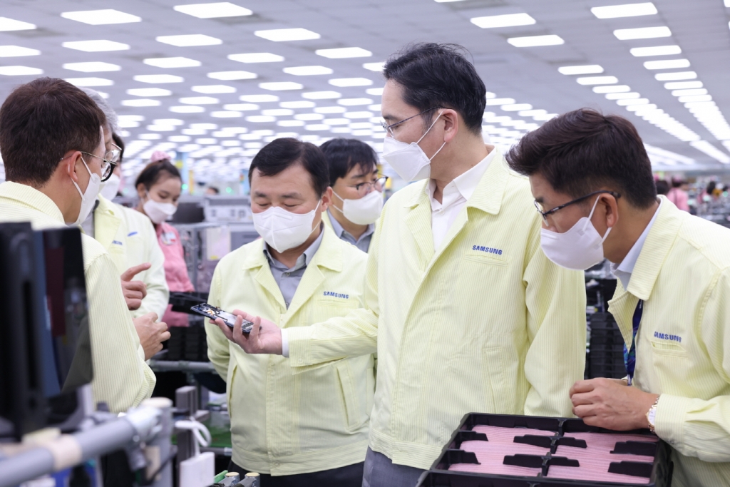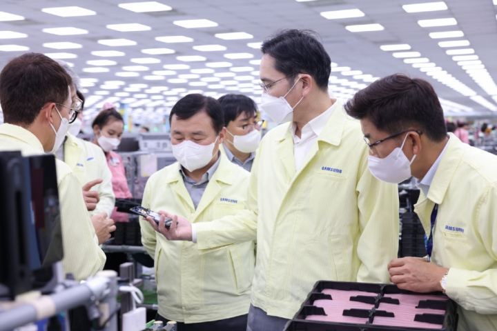 ▲ 이재용 삼성전자 회장이 22일(목) 베트남 하노이 인근의 삼성디스플레이 법인(SDV)을 방문해 디스플레이 생산 공장을 점검하는 모습