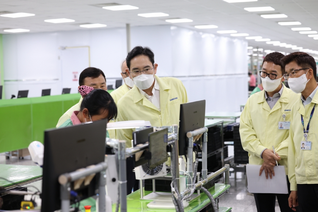 ▲ 이재용 삼성전자 회장이 22일(목) 베트남 하노이 인근의 삼성디스플레이 법인(SDV)을 방문해 디스플레이 생산 공장을 점검하는 모습