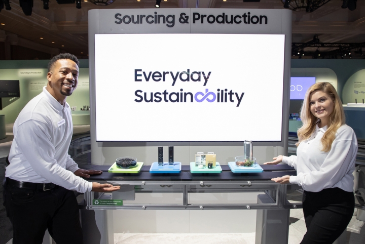 ▲삼성전자 모델이 미국 라스베이거스에서 열리는 세계 최대 전자 전시회 CES 2023 개막을 앞두고 3일 ‘삼성 퍼스트룩 2023’ 행사에서 ESG 존을 소개하고 있다.