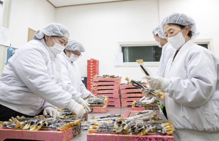 ▲ 삼성전자 스마트공장 지원을 받은 홍삼 가공식품 업체 ‘천년홍삼’ 직원들이 설 명절용 제품을 생산하고 있는 모습