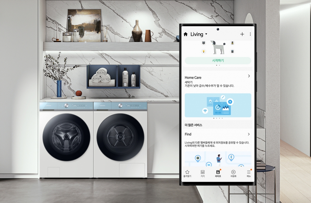 ▲한국표준협회로 부터 국내 최초로 ‘AI 신뢰성 인증’을 획득한 삼성 ‘비스포크 제트 봇 AI’와 ‘스마트싱스 홈케어’ 이미지