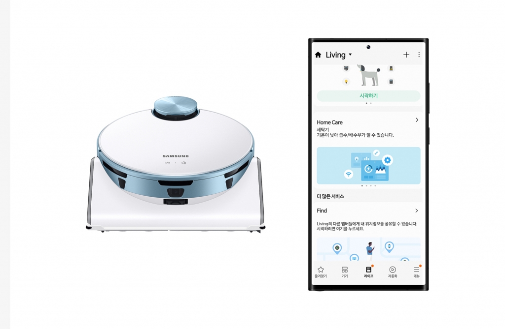 ▲한국표준협회로 부터 국내 최초로 ‘AI 신뢰성 인증’을 획득한 삼성 ‘비스포크 제트 봇 AI’와 ‘스마트싱스 홈케어’ 이미지