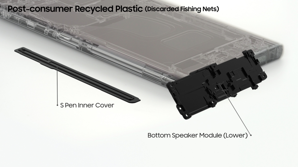 ▲ 갤럭시 S23울트라에 적용된 폐어망 재활용 플라스틱 부품