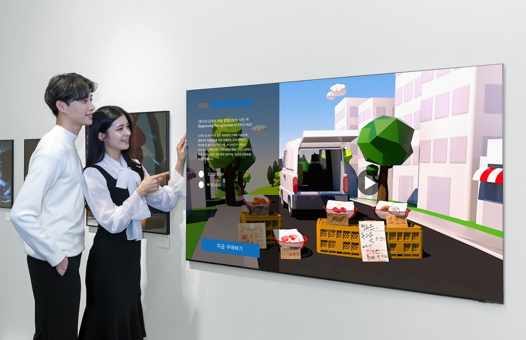 ▲삼성전자가 2월 9일부터 3월 19일까지 서울 잠실 롯데월드타워몰에 위치한 ‘넥스트 뮤지엄(Next Museum)’에서 Neo QLED 8K와 더 프레임을 통해 NFT 작품을 선보인다. 삼성전자 모델이 서울 잠실 롯데월드타워몰에 위치한 ‘넥스트 뮤지엄’에서 Neo QLED 8K와 더 프레임을 통해 전시되는 NFT 작품을 소개하고 있다.