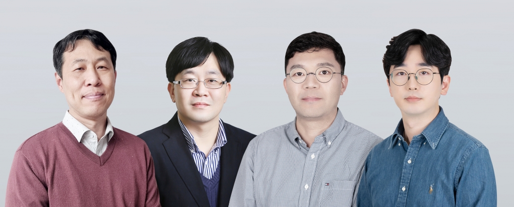 ▲ 삼성전자 SAIT(Samsung Advanced Institute of Technology)가 하나의 필터로 미세먼지와 유해가스를 동시에 제거하고, 간단한 물 세척만으로 최대 20년동안 사용할 수 있는 신기술을 개발했다. 세계 최초 광촉매 적용 ‘재사용 가능’ 공기정화 필터 기술을 개발한 삼성전자 SAIT 연구진 (왼쪽부터 양동식, 이현철, 권혁재, 구민석 연구원)