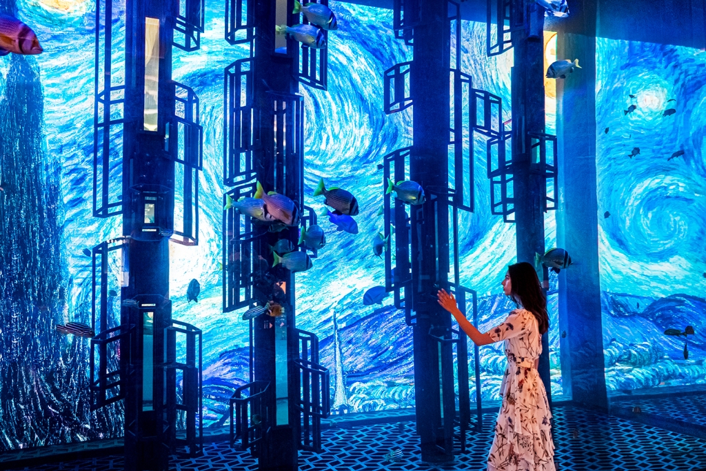 ▲삼성전자가 지난 3월 오픈한 중동 두바이의 초호화 호텔&리조트 ‘아틀란티스 더 로열 (Atlantis The Royal)’에 스마트 사이니지와 호텔 TV를 대거 공급했다. 삼성전자 모델이 아랍에미리트 두바이에 위치한 초호화 호텔&리조트 ‘아틀란티스 더 로열’ 로비에 설치된 스마트 LED 사이니지를 선보이고 있다.