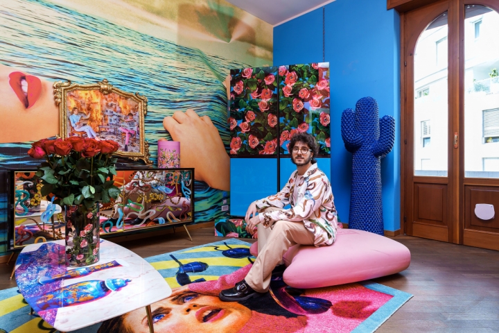 ▲ 삼성전자는 17일(현지시간) ‘푸오리살로네(Fuorisalone)’에서 이탈리아 크리에이티브 스튜디오인 ‘토일렛페이퍼(TOILETPAPER)’와 협업한 한정판 디자인 ‘비스포크 냉장고’를 소개했다. 삼성전자 모델이 이탈리아 밀라노에 위치한 ‘토일렛페이퍼 홈’에서 토일렛페이퍼의 가구ㆍ소품들과 함께 한정판 디자인 ‘비스포크 냉장고’를 선보이고 있다.