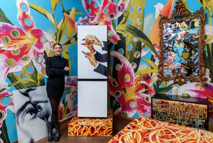 ▲ 삼성전자는 17일(현지시간) ‘푸오리살로네(Fuorisalone)’에서 이탈리아 크리에이티브 스튜디오인 ‘토일렛페이퍼(TOILETPAPER)’와 협업한 한정판 디자인 ‘비스포크 냉장고’를 소개했다. 삼성전자 모델이 이탈리아 밀라노에 위치한 ‘토일렛페이퍼 홈’에서 토일렛페이퍼의 가구ㆍ소품들과 함께 한정판 디자인 ‘비스포크 냉장고’를 선보이고 있다.