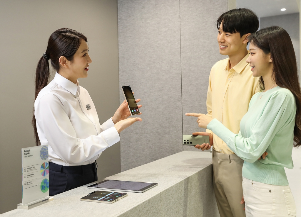 ▲ 삼성전자가 19일부터 21일까지 서울 삼성동 코엑스(COEX)에서 진행되는 ‘2023 월드IT쇼(2023 World IT Show)’에 참가한다.19일 서울 코엑스에서 열린 ‘2023 월드IT쇼’ 삼성전자관에서 관람객들이 ‘갤럭시 오픈 투 고’ 서비스를 안내받고 있다.