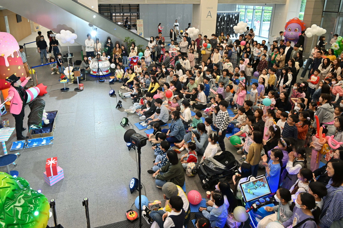 ▲삼성전자 DX 부문은 5월 가정의 달을 맞아 서울·구미·광주·수원 등 전국 각 사업장을 임직원과 협력회사 가족에게 개방해 특별한 경험을 선사한다. 5일 어린이날을 맞아 임직원과 협력회사 가족에게 개방된 삼성전자 서울R&D캠퍼스에 방문한 임직원 가족들이 마술쇼를 관람하며 즐거운 시간을 보내고 있다.