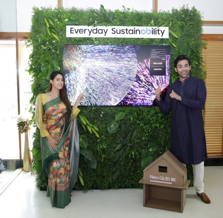 ▲삼성전자가 4일 인도 방갈로르의 삼성 오페라 하우스에서 2023년 Neo QLED 제품 공개 행사를 열고 삼성 TV의 강력한 성능 안전한 연결성 몰입형 게이밍ㆍ개인 맞춤형 경험ㆍ지속가능성을 강조했다. 삼성전자 모델이 인도 방갈로르 삼성 오페라 하우스에서 열린 2023년 Neo QLED 제품 공개 행사에서 다양한 삼성 TV 신제품들을 선보이고 있다.