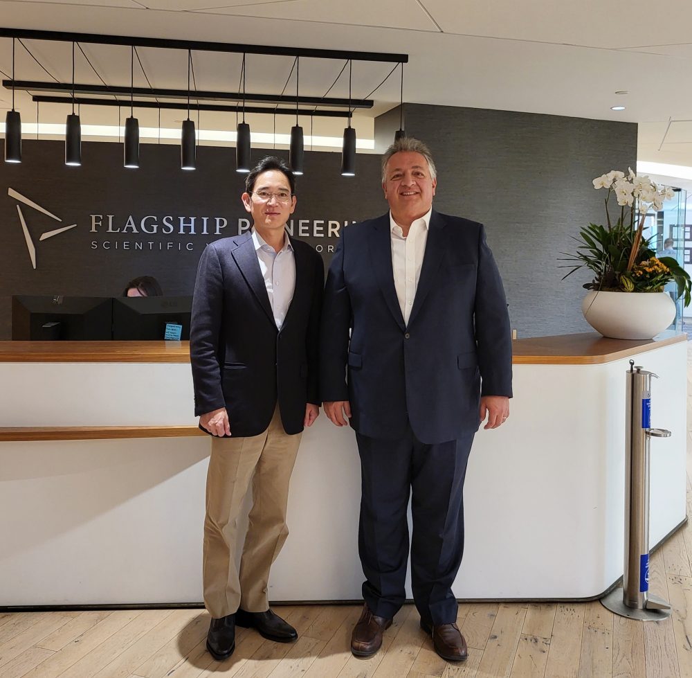 ▲이재용 삼성전자 회장은 세계 최대 바이오클러스터인 미국 동부에서, 글로벌 빅파마(Big Pharma) 및 바이오 벤처 인큐베이션 회사 등 바이오 시장을 선도하고 있는 글로벌 CEO들과 연쇄 회동을 가짐으로써 ‘제2반도체 신화’ 구현의 토대를 마련했다.이재용 삼성전자 회장이 지난 2021년 11월 미국 플래그십 파이어니어링 본사를 찾아 누바 아페얀(Noubar Afeyan) 모더나 공동 설립자 겸 이사회 의장과 만난 모습
