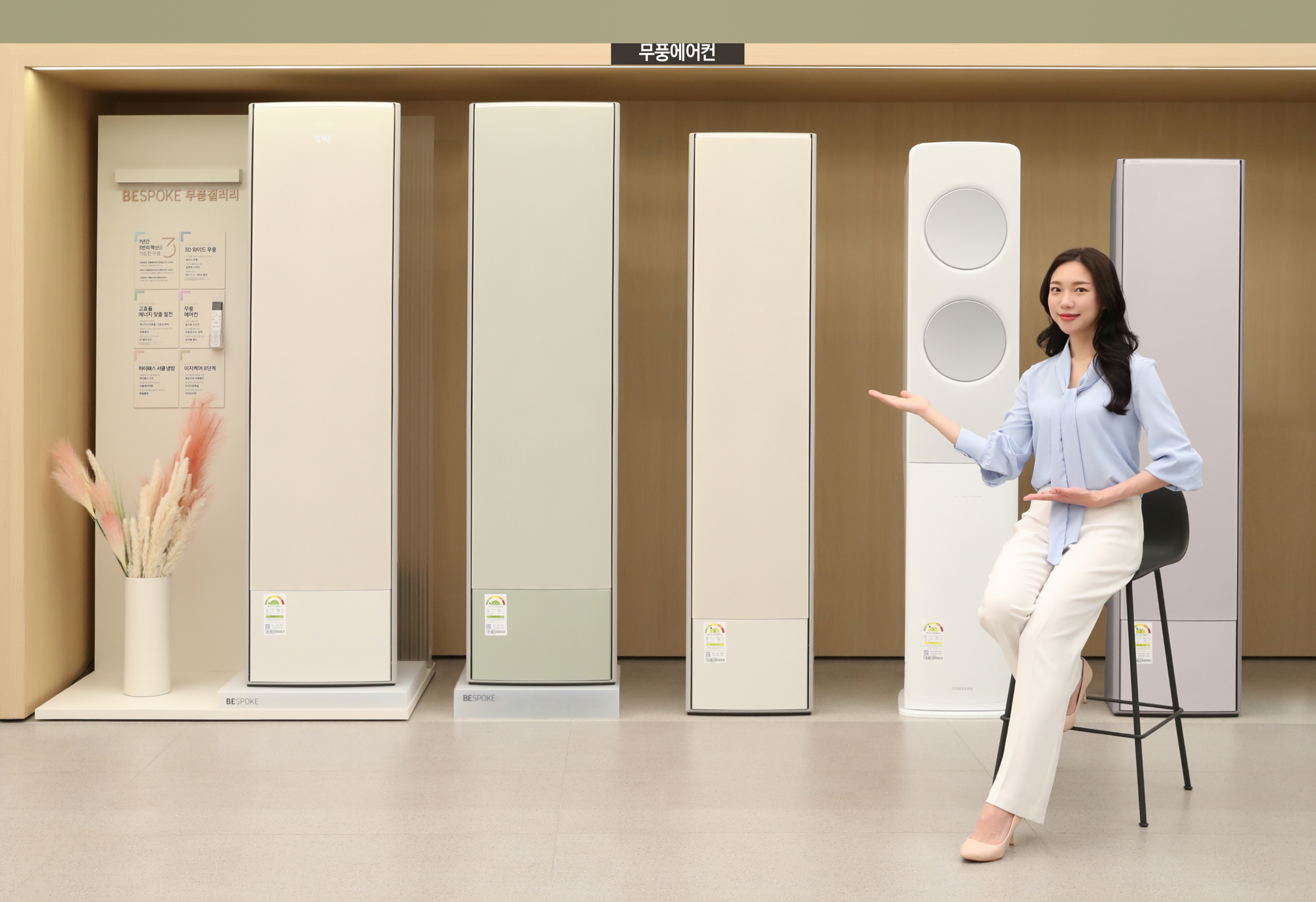 ▲ 에너지 소비효율 1등급 무풍에어컨이 인기를 끌면서 삼성전자의 1분기 국내 에어컨 시장 점유율이 크게 높아졌다. 삼성전자 모델이 서울 대치동에 위치한 삼성스토어 대치점에서 무풍에어컨을 소개하고 있다.