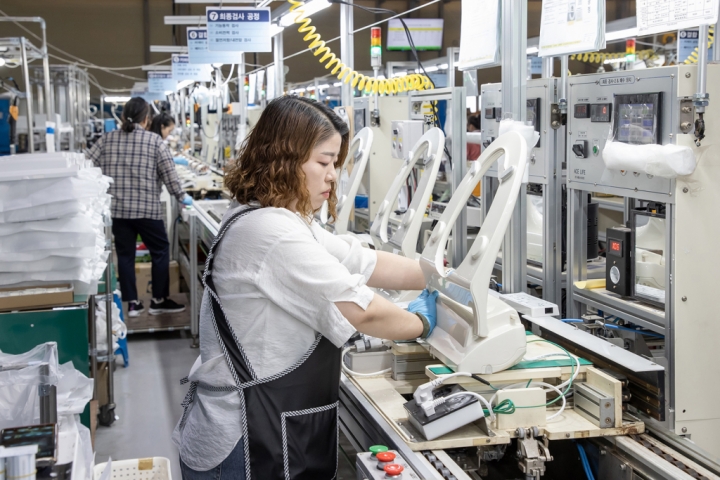 ▲삼성전자는 인공지능(AI)과 데이터 기술을 활용해 중소기업 제조 현장을 지능형 공장으로 고도화하는 ‘스마트공장 3.0’ 사업을 시작한다.충청남도 아산에 위치한 비데 전문기업 ‘에이스라이프’에서 직원이 비데 제품의 품질 상태를 점검하고 있다.