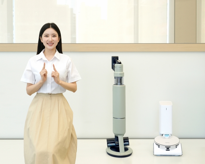 ▲삼성전자가 문화체육관광부와 협업해 청소기 사용법을 수어로 안내한다. 삼성전자가 문화체육관광부 ‘수어와 만나다’ 프로젝트에 참여해 비스포크 청소기 사용법을 수어로 안내한다.삼성전자가 문화체육관광부 ‘수어와 만나다’ 프로젝트에 참여해 비스포크 청소기 사용법을 수어로 안내한다. 삼성전자 모델이 ‘만나다’라는 수어와 함께 수어 사용법을 제공하는 ‘비스포크 제트 AI’와 ‘비스포크 제트 봇 AI’를 소개하고 있는 모습