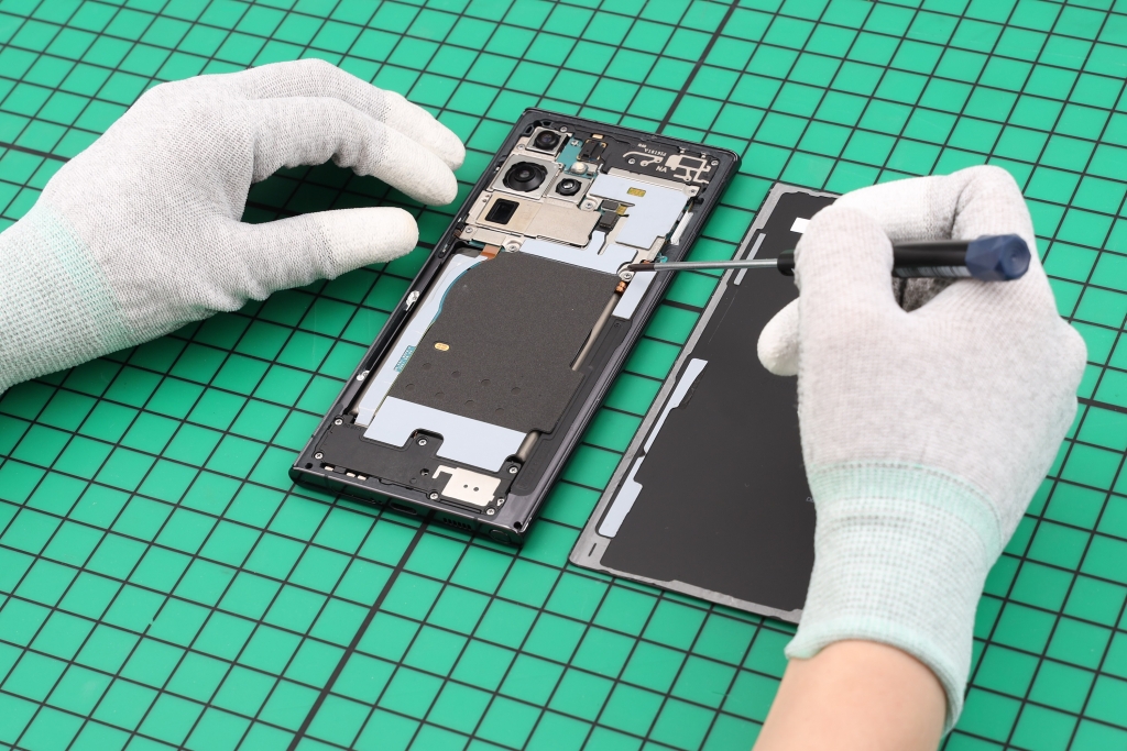 ▲삼성전자가 갤럭시 자가 수리 프로그램을 미국, 한국에 이어 유럽 9개국으로 확대한다. 갤럭시 S22 울트라 제품을 자가 수리 하는 모습