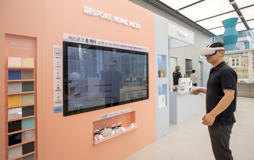 ▲삼성전자가 새로운 콘셉트의 체험형 플래그십 스토어 ‘삼성 강남’을 29일 오픈한다. ‘삼성 강남’ 3층에서 고객이 비스포크 홈메타를 통해 취향에 맞는 라이프 스타일을 경험하고 있다.