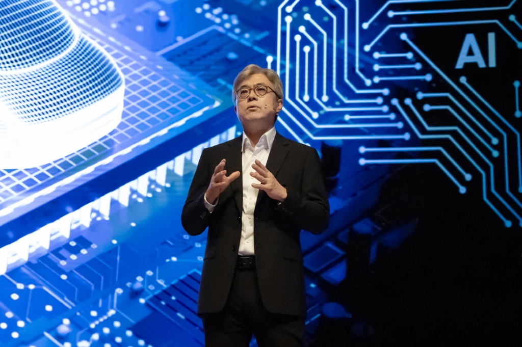 ▲삼성전자가 4일 삼성동 코엑스에서 ‘삼성 파운드리 포럼 2023(Samsung Foundry Forum 2023)’과 ‘SAFE(Samsung Advanced Foundry Ecosystem) 포럼 2023’을 개최하며, AI 반도체 생태계 강화를 위한 삼성전자 파운드리 전략을 공개했다. 삼성전자가 4일 삼성동 코엑스에서 개최한 ‘삼성 파운드리/SAFE 포럼’에 고객과 파트너 1,100여명이 참석한 가운데 최시영 사장이 기조연설을 하고 있는 모습