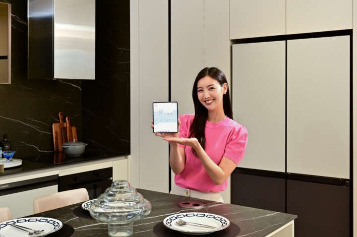 ▲ 삼성전자가 스마트싱스(SmartThings)를 적용한 스마트 아파트에 ‘맵 뷰(Map View)’기반의 홈 IoT 솔루션을 새롭게 선보인다. 삼성전자 모델이 ‘맵 뷰(Map View)’ 기반 스마트싱스 (SmartThings) 홈 IoT 솔루션을 사용하는 모습