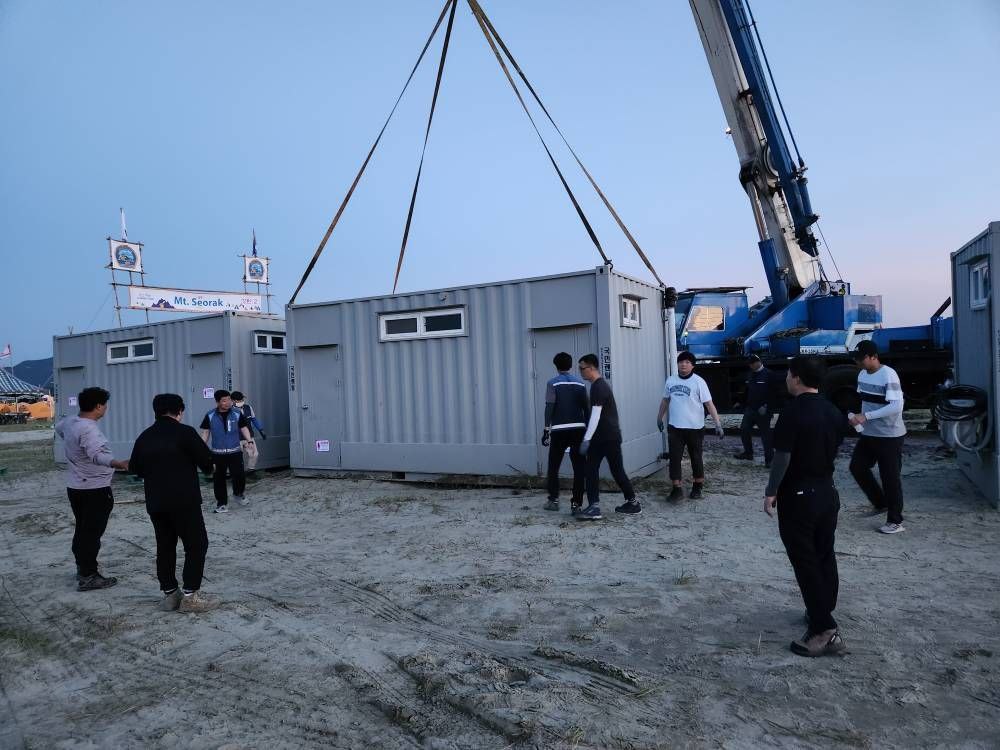 ▲삼성이 지원한 에어컨 장착 간이 화장실이 제25회 세계스카우트잼버리 현장에 설치되고 있는 모습.