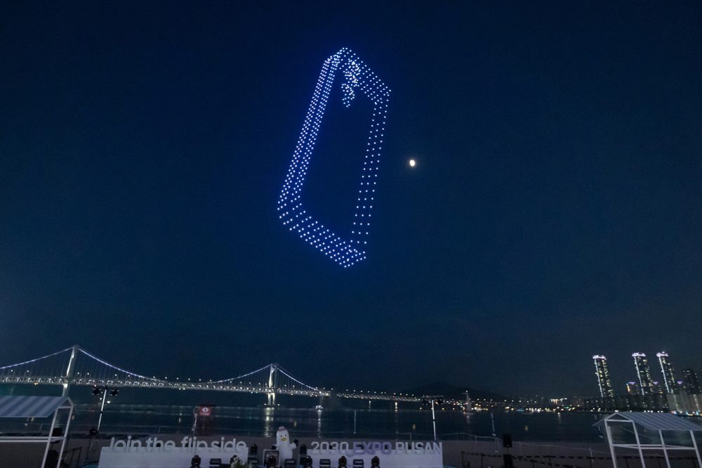삼성전자가 갤럭시 신제품을 체험할 수 있는 갤럭시 스튜디오 ‘부산 광안리’ 오픈을 기념해, 28일 부산 수영구 광안리해수욕장에서 ‘드론 라이트쇼(Drone Light Show)’를 진행했다.