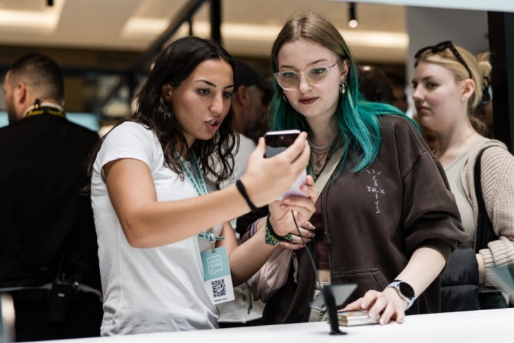 ▲ 8월 9일(현지시간) 독일 베를린의 ‘갤럭시 익스피리언스 스페이스’에서 방문객이 ‘갤럭시 Z 플립5’를 체험하는 모습