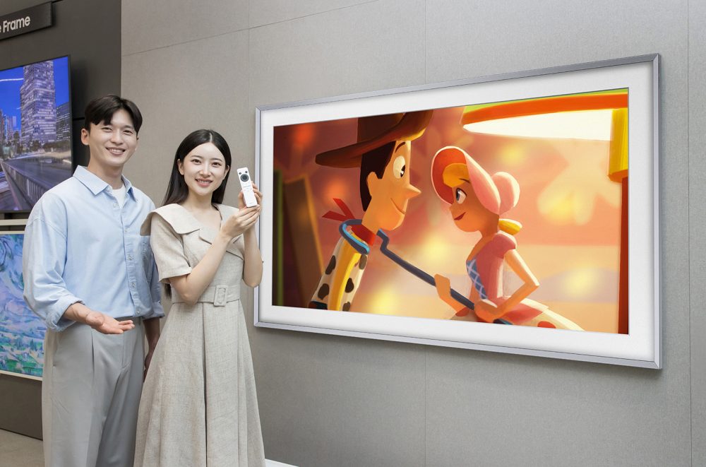 ▲ 삼성전자 모델이 삼성스토어 대치점에서 라이프스타일 TV ‘더 프레임(The Frame) 디즈니 100주년 에디션’을 소개하고 있다.