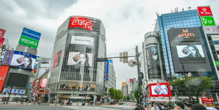 삼성전자가 일본 도쿄 시부야에서 ‘갤럭시 Z 플립5’ 옥외광고를 진행하고 있다.