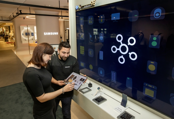 ▲ 독일 베를린 ‘카우프하우스 데스 베스텐스(Kaufhaus des Westens)’ 백화점에 위치한 삼성전자 프리미엄 체험존에서 스마트싱스를 체험하고 있는 모습