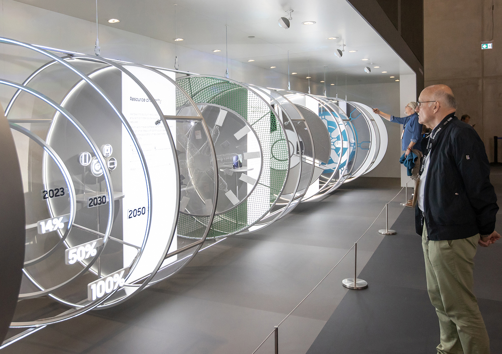 ▲ 이번 전시에서 삼성전자는 新환경경영전략 발표 이후 자원순환 생태계 구축을 위해 신설한 조직 순환경제연구소가 개발한 재활용 소재 ‘r-ABS’를 비롯해 재활용 소재 사용 로드맵을 선보였다.