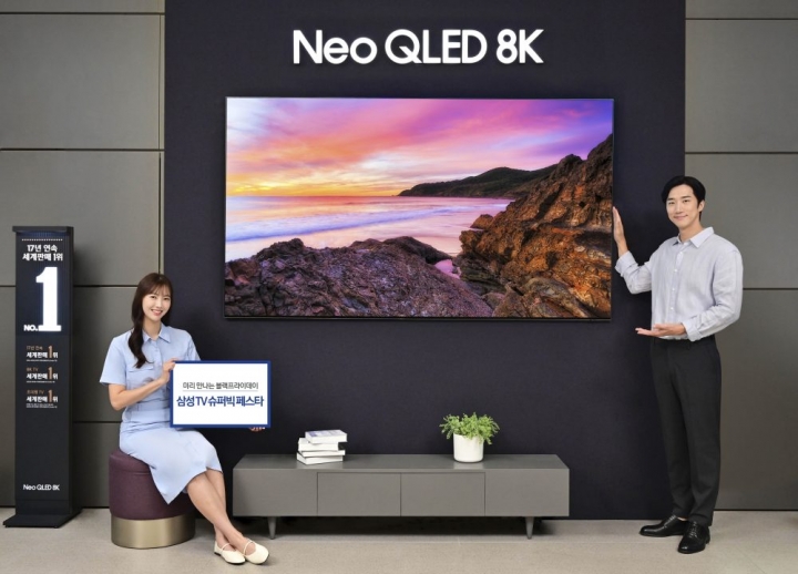 ▲ 삼성전자 모델이 서울 강남구 대치동에 위치한 삼성스토어 대치점에서 ‘삼성 TV 슈퍼빅 페스타’ 프로모션을 소개하고 있다.