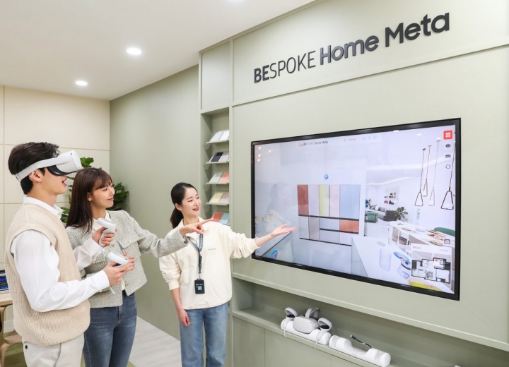 ▲ KES 2023(한국전자전)이 열리는 서울 코엑스(COEX)에 위치한 삼성전자관에서 관람객들이 자신의 취향과 인테리어 스타일에 맞춰 비스포크 가전을 추천 받고 나만의 공간을 꾸며보는 ‘비스포크 홈메타’를 체험하고 있다.