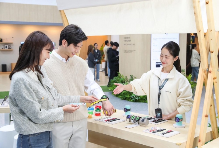 ▲ KES 2023(한국전자전)이 열리는 서울 코엑스(COEX)에 위치한 삼성전자관의 스마트 파크에서 관람객들이 다채로운 스트랩으로 ‘갤럭시 워치6’를 꾸며보고 있다.