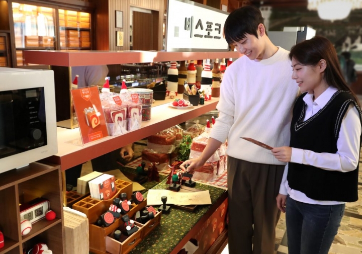▲삼성전자 ‘비스포크 빵지순례’ 체험존 방문객이 태극당 장충 본점 방문 인증 스탬프를 찍고 있다.