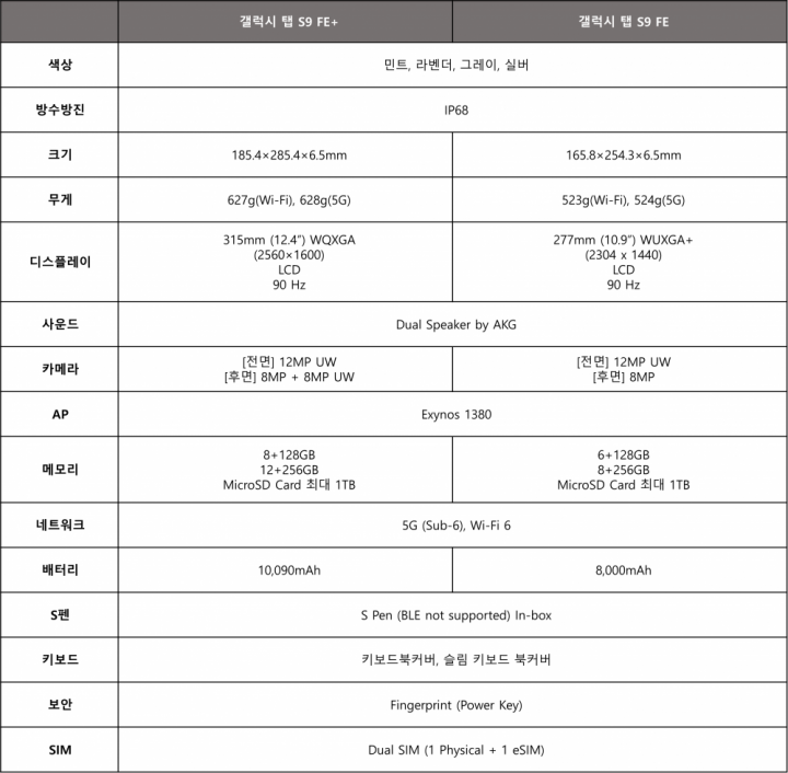 삼성전자, ‘갤럭시 탭 S9 FE·갤럭시 탭 S9 FE+’ 국내 출시