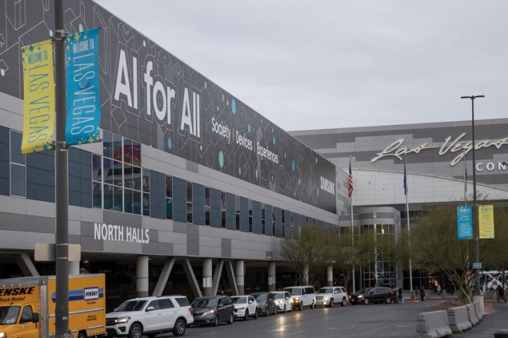 ▲ 세계 최대 전자 전시회 CES 2024가 열리는 미국 라스베이거스 컨벤션센터의 외경, 삼성전자 옥외광고 전경.