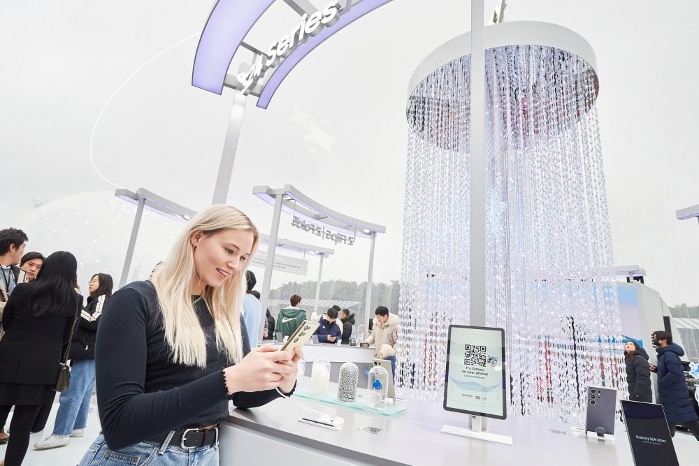 ▲ 20일, 영국 스노보드 국가대표 케이티 오머로드(Katie Ormerod) 선수가 삼성 갤럭시 올림픽 체험관에서 ‘갤럭시 S24 시리즈’의 다양한 기능을 체험하는 모습