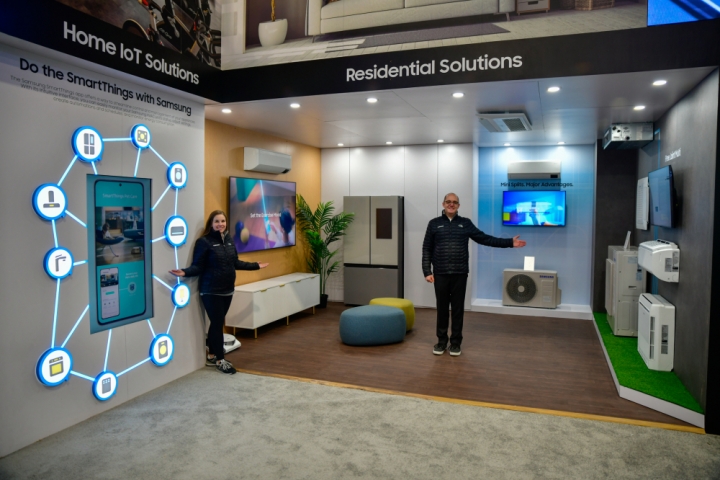 ▲ 삼성전자가 미국 시카고에서 개최되는 북미 최대 공조 전시회 ‘AHR 엑스포’에 참가해 혁신적인 공조 솔루션을 선보인다. 삼성전자 모델이 스마트싱스를 중심으로 한 홈 IoT 솔루션을 소개하고 있는 모습