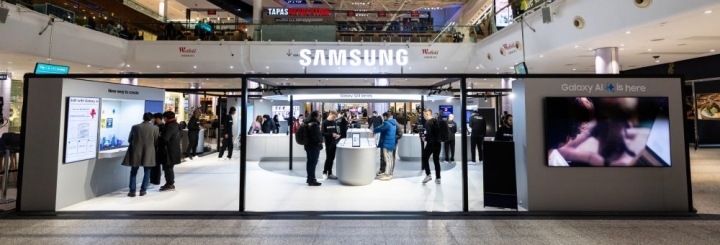 ▲19일 영국 런던 웨스트필드 쇼핑몰에 마련된 ‘갤럭시 S24 시리즈’ 체험 공간에서 현지 소비자들이 제품을 체험하는 모습