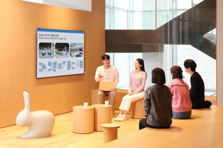 ▲ 삼성전자의 오프라인 매장인 삼성스토어가 매장 내 강의실을 모임 장소로 무상 대여하는 ‘열린공간 서비스’를 전국 27개 매장에서 본격 운영한다. 삼성스토어 부천중동점에서 해당 서비스를 소개하는 모습.
