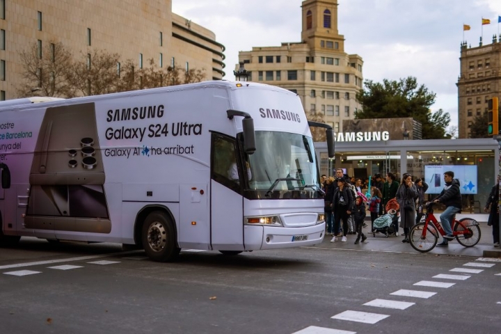 ▲ 현지시간 25일, 스페인 바르셀로나 시내를 누비는 갤럭시 S24 시리즈 랩핑 버스