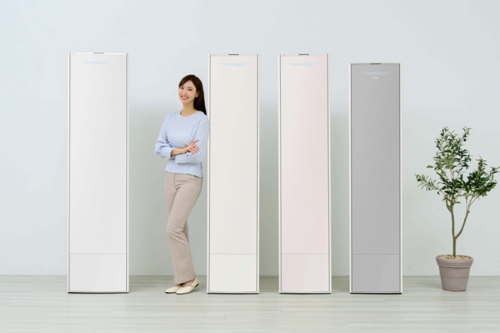 ▲ 삼성전자가 에너지 절약 기능을 강화한 2024년형 비스포크 무풍에어컨을 출시한다고 26일 밝혔다. 삼성전자 모델이 스탠드형 ‘비스포크 무풍에어컨 갤러리’ 신제품을 소개하는 모습